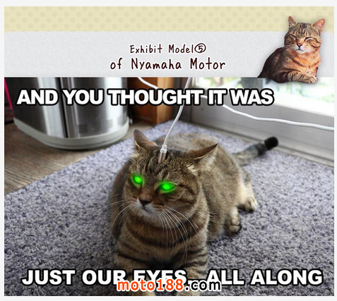YAMAHA透過官方網(wǎng)頁公 佈,將會派出可愛小貓咪,代表YAMAHA出任車展大使,介紹新車及與來賓溝通。除了新車外,YAMAHA還會展示機(jī)械人駕駛電單的科技,另 外,YAMAHA今年還會展出自家設(shè)計的汽車。根據(jù)YAMAHA官方文字稿,已感受到車廠將會投放更多資源開發(fā)體積細(xì)小,流動更便捷的實用型小排量車種。