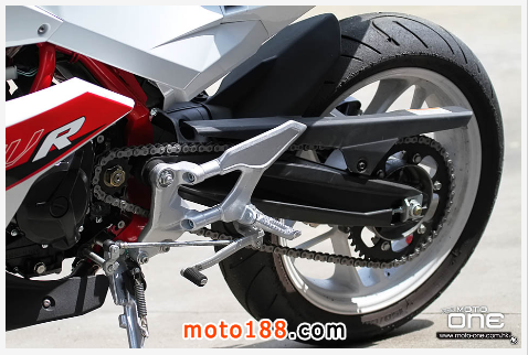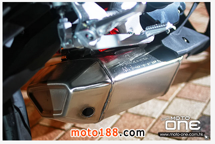 ●更換排氣管及消聲器是釋放馬力的方法之一,HYOSUNG GD250R採用中置式的排氣管擺放設(shè)計,使車輛有更佳重心。