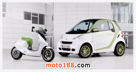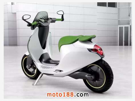 這款電動(dòng)兩輪車被命名為escooter概念車,采用白色和綠色雙色調(diào),與Smart fortwo電動(dòng)版一樣,其擋風(fēng)玻璃和車身飾板上帶有蜂窩狀紋路,大燈采用LED光源。