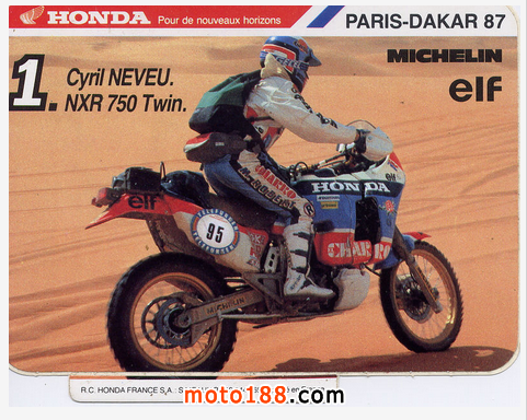 ●80年代,HONDA製造純種越野冒險戰(zhàn)車NXR750V,其后製造更大排氣的NXR800V,參加全球最艱難的達(dá)卡(達(dá)客爾)拉力賽,一鳴驚人的HONDA創(chuàng)造1986-1989的4連冠神話。