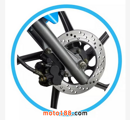 超大碟剎盤前制動:前剎是單向雙活塞油壓碟剎,規(guī)格Φ220mm,表面黑色,摩擦面未噴漆。后制動是鼓剎,規(guī)格為Φ110mm。