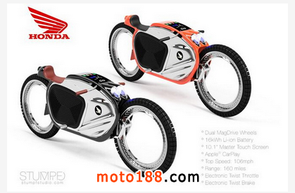 看到名稱后綴的英文字母“E”,結合這款車夸張的造型,不難想像著是一部先進的電力驅(qū)動摩托車。老周認為CB 160 E最大的特色在于其兩個完全鏤空的車輪,這種近乎于科幻的設計擁有難以抗拒的魅力。