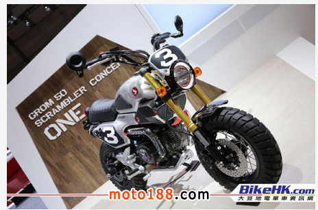 這臺GROM 125的概念車可說是姍姍來遲,當(dāng)MSX125推出市場時(shí),玩家們一早已改得比這臺車更天花龍鳳。不過,車身兩邊加入金屬飾片,鴨尾的線條又改成賽車版的單座鞍,這算是最引人入勝之處吧。