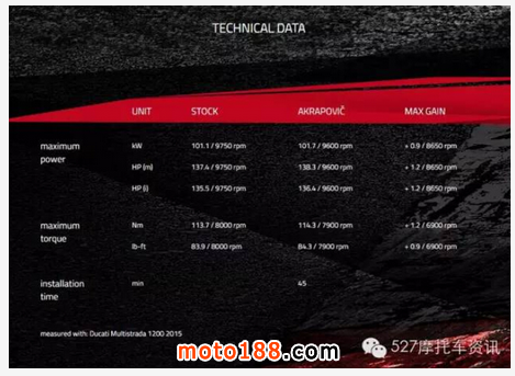 新款(r)evolutionary鈦合金尾段使Multistrada 1200的動力輸出更加順暢,并將獲得1.2匹(8650轉(zhuǎn))的馬力提升和1.2牛米(6900轉(zhuǎn))的扭矩提升;排氣管采用頂級的鈦合金材質(zhì),并配備手工打造的碳纖維隔熱板和尾蓋,鈦合金材質(zhì)的采用極大減輕了排氣管的重量;新款排氣管還能使Multistrada 1200的聲浪更加低沉渾厚,動人心魄。另外,Akrapovi?還為改裝愛好者打造了一款選配的鈦合金排氣集管,它可幫助Multistrada 1200進一步提升馬力和油門響應時間,并使其擁有賽車般“咆哮”的聲浪。