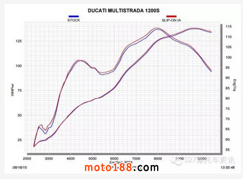 藍線為原款排氣 紅線為Akrapovi?排氣