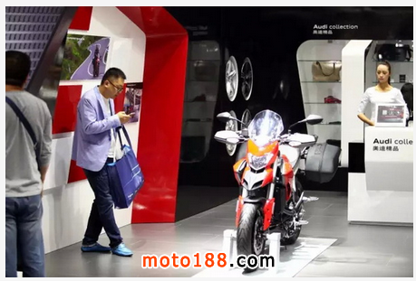 2015年10月28日,意大利頂級摩托車品牌 Ducati 杜卡迪攜旗下重磅熱門車型Hyperstrada駭?shù)黎擦料嗟谑鶎煤贾輫H汽車工業(yè)展覽會(簡稱杭州車展)奧迪展臺,這也是本年度杜卡迪和奧迪第四次在國內(nèi)重要車展上聯(lián)合亮相,本次車展共持續(xù) 5 天,10月28日為車展媒體日。杭州地區(qū)是領(lǐng)跑江浙一帶 GDP 增速的牽頭區(qū)域,今年六月杜卡迪杭州的入駐也為這座城市添加了濃厚的摩托車騎行氛圍。與此同時,此次車展和奧迪的聯(lián)合亮相對于杜卡迪來說意義十分重大,也讓杜卡迪有機會更近距離的接觸江浙地區(qū)車迷,聽取當?shù)剀嚸缘男畔⒎答仭?br />