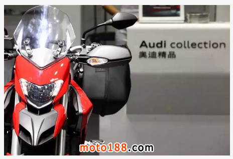 本次車展杜卡迪展出的是 Hyperstrada 駭?shù)?,在奧迪展臺眾多豪華精品轎車的點綴下,杜卡迪摩托車以卓越的外形設(shè)計、酷炫靈活的身姿亮相令廣大車迷眼前一亮。