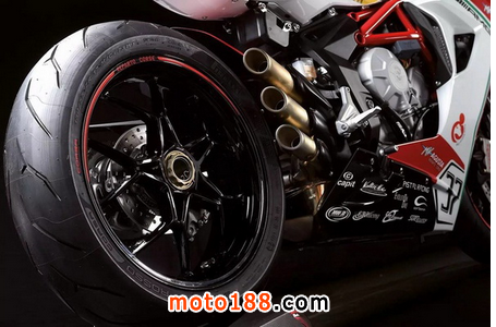 F3 800 RC擁有純正的賽車血統(tǒng),不僅采用了奧古斯塔WSS賽車的貼花,而且配有賽車手克魯澤爾和扎內蒂的聯合簽名,腳蹬用上了Ergal產品,離合器桿、前剎車桿具有防折斷的接頭……當然,對于這臺風格和性能兼?zhèn)涞囊獯罄苘?,想要物美價廉是不可能的。限量發(fā)行250臺的F3 800 RC,售價高達19250美元,比最新版雅馬哈YZF-R1還貴2000多美元;限量發(fā)行100臺的F3 675 RC略便宜些,但同樣貴過了YZF-R1。