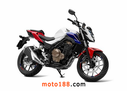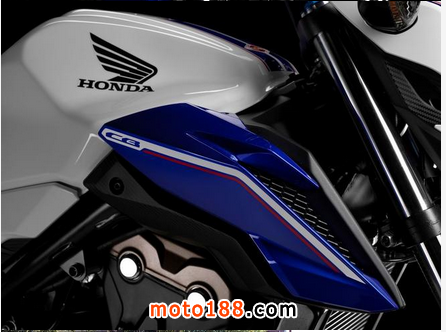 2016款CB500F在外觀上進一步提升陽剛形象,造型更具活力,經(jīng)典的紅藍白配色更襯托出車身的線條感。