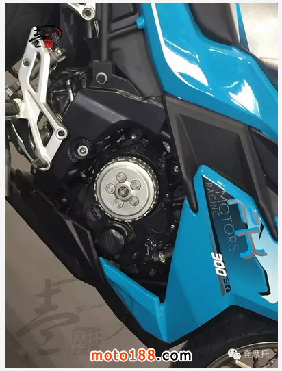 FK300RR是依照MOTO3標(biāo)準(zhǔn)研發(fā)的250cc賽車基礎(chǔ)上添加安全法規(guī)部品直接量產(chǎn)的車型,發(fā)動(dòng)機(jī)排量從賽道版的250cc擴(kuò)充到302cc以滿足該級(jí)別國(guó)際潮流的需求。