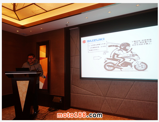 鈴木(中國)投資有限公司副總經(jīng)理下位啟介先生揭開紅蓋頭,SUZUKI V-Strom 650 首次出現(xiàn)在中國媒體面前。