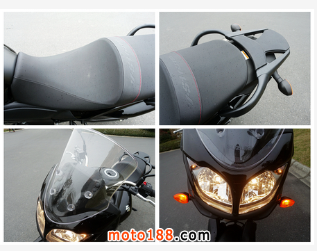 V-Strom 650的座椅厚實且舒服,甚至?xí)a(chǎn)生一種騎著踏板的感覺。急加速時,座椅的凹部甚至可以給車手提供支撐力。后部行李架采用的是樹脂類的輕型耐磨防滑材料。前大燈的設(shè)計避免了任何反射效果不好的光板,有效的提高了光源的折射,加大了夜間行車的可視范圍。