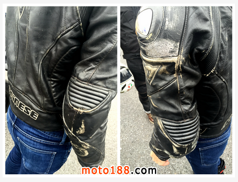 一位媒體老師的騎行服,從兩側(cè)的傷痕可以看出他的實力。