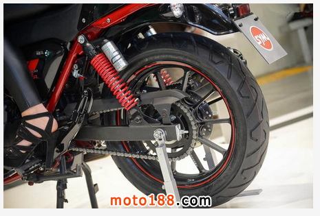 此次最新發(fā)布的SB300新款車型采用水冷單缸設計,排量為278.3cc,最大馬力為27hp/8000 rpm,最大扭矩為26.5N·m/7000rpm。從數據上看,這不是一部以性能見長的車型。