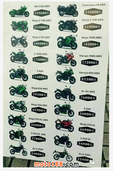 我們看看全系引進國內(nèi)的川崎大貿(mào)價格吧。