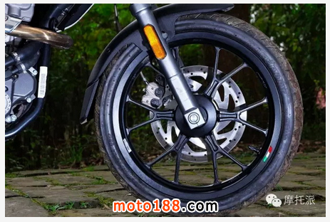 輪胎:前100/80-17,后130/70-17,正新輪胎,運(yùn)動(dòng)型輪輞。不過(guò),我倒覺得輻條輪配大齒紋胎更帶感,也更好玩。