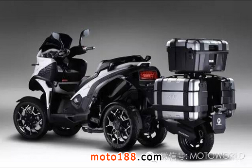 核心提示: Quadro 4 motion是一部具有創(chuàng)新意義的摩托車,加上專用拖車后便成為一款5個輪子的摩托車。 它既擁有摩托車的便捷性,也擁有
