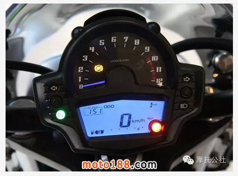 Vulcan S的儀表與同門兄弟ER6N幾乎一模一樣,只是在左右兩側(cè)按鍵部位做了些許條紋處理。轉(zhuǎn)速上做了限制,在9500轉(zhuǎn)的時候就進(jìn)入了紅區(qū)。