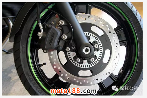 Vulcan S的剎車比街車兄弟差了些。前輪為300mm單碟加日清雙活塞卡鉗,后輪為250mm單碟加日清單活塞卡鉗。輪轂為前18寸后17寸,輪胎寬度和ER6N一樣,都是前120后160。輪胎型號為鄧祿普SPORTMAX 。這些配置,對于不是跑速度的巡航車來說,也夠了。搭配了ABS,安全性也得到了保證。