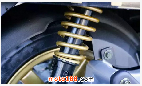 從車後看過來可以發(fā)現(xiàn)本次避震彈簧色調(diào)改為金色。