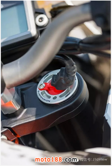 在談騎行感受之前,再來看下它的配置。數(shù)據(jù)就不一一羅列了。發(fā)動機不用再多介紹,就是1290的75度V型雙缸發(fā)動機。出自WP的半主動調節(jié)車架系統(tǒng)。配備了最新的BOSCH出品的彎道ABS系統(tǒng)。LED燈配備的轉彎自啟動和熄滅功能。油箱的容量達到20L,進一步保障長途旅行的可靠性。較長的避震行程和藏在碩大油箱后面舒適的座椅再加上較高的握把的位置也保證了長途騎行的舒適性。