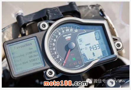 跨上車,按下啟動按鈕,1290的V型雙缸就立即開始發(fā)出低沉的咆哮聲,等待主人駕駛它出發(fā)。