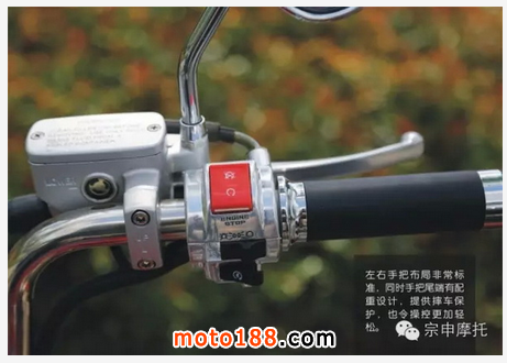手把設(shè)計(jì)氣勢很足,較國內(nèi)同類太子車手把位置相對高些,也更加張揚(yáng),但駕駛起來頗為舒適。