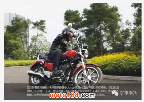 RA1專為亞洲人量身定制所以在操控起來比純粹的美式太子更加順手,評測中RA1在動力、操控、耐久性、舒適性等方面表現(xiàn)出色,能夠勝任強(qiáng)度較大的長途騎行任務(wù)。