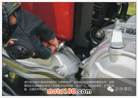 進(jìn)行測試前RA1基本保持剛出廠的原始狀態(tài),發(fā)動機(jī)內(nèi)機(jī)油維持在最低水平,但即便如此在高強(qiáng)度的測試下發(fā)動機(jī)無任何異響,動力十足。測試結(jié)束后,擰開機(jī)油蓋,尖端無異色雜質(zhì),耐久可見一斑。