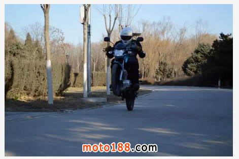 騎上車第一個動作就是以往最難的倒車,首先感覺130kg的車重真的很輕,即使不能雙腳掌全面著地,但倒車調頭仍然毫不費力。道路駕駛中車身靈活好操控,低扭比較大,怠速很高,檔位清晰,尤其是二檔降空擋時很好找一踩就到。雖然沒有ABS,但在急剎輪胎抱死時,由于車輕易操控,所以感覺仍可以在控制之中,這種安全感還是第一次有。