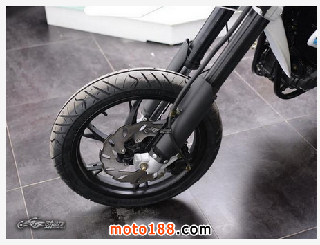 粗壯的倒立式液壓前叉看上去給人一種信心滿滿的感覺,無論是在公路行駛還是越野路段甚至是滑胎動(dòng)作,都能迎刃而解。