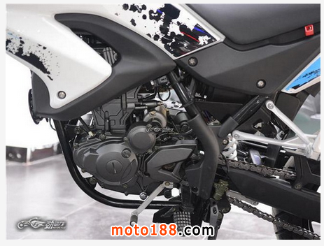 250毫升的排氣量配以國(guó)內(nèi)唯一使用雙凸輪軸、四氣門、水冷單缸往復(fù)式6擋鏈條傳動(dòng)的電噴發(fā)動(dòng)機(jī),對(duì)于車重只有140公斤的它來說,動(dòng)力完全可以滿足大部分的用戶需求。