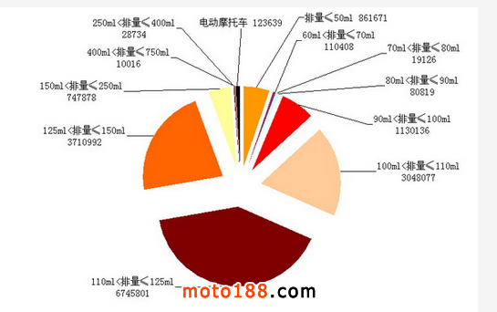 250ml<排量≤400ml排量段產品共銷售27626臺,這個被譽為休閑娛樂的排量段產品,雖然漲幅高達185%,但總量僅為28734臺。