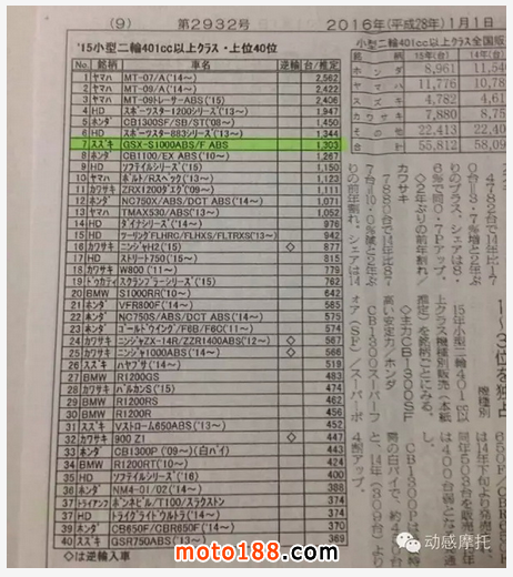 2015年7月在日本GSX-S1000正式上市,僅短短半年左右的時間,在全國兩輪機車銷量榜上排行第七位,可謂是后來者居上,如果換成全年都有現(xiàn)車銷售的話,位居榜首也是有可能的!