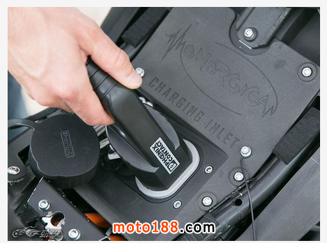 電池組的壽命約為1200次充放電,使用原廠功率為3千瓦的充電器可在3個(gè)半小時(shí)充滿。另外可選配的快速充電器可把充電時(shí)間縮短至半個(gè)小時(shí)。位于車座下方的充電插頭使用起來很方便。同時(shí),還可通過高、中、低3檔設(shè)置進(jìn)行動(dòng)能回收,在關(guān)閉“油門”的時(shí)候從電機(jī)向電池組充電。動(dòng)能回收進(jìn)一步延長了續(xù)航里程,但從松開“油門”到真正啟動(dòng)制動(dòng)系統(tǒng)的過程中,這種能量回收的方式可能會(huì)讓人們不適應(yīng)。對(duì)于環(huán)保的另一個(gè)貢獻(xiàn)是,當(dāng)電池組快要“壽終正寢”時(shí),Energica公司還可提供原廠的電池置換服務(wù)。