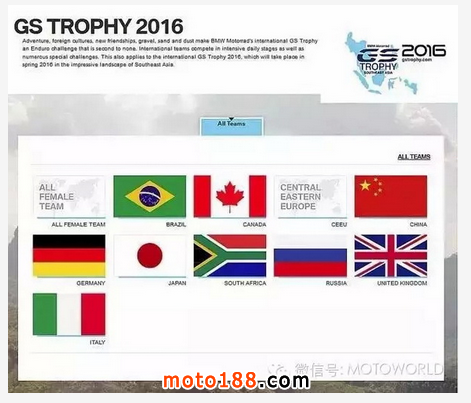 祝愿中國(guó)隊(duì)在2016年BMW Motorrad GS Trophy挑戰(zhàn)賽上勇奪佳績(jī),留下屬于我們中國(guó)人的傳奇經(jīng)歷。