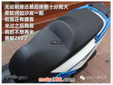 這些缺點(diǎn)或許有些雞蛋里挑骨頭了,總的來說,小編還是對賽艇300非常滿意的,覺得這3萬塊錢花得真值。自從有了它,小編都很少開汽車上班了。頭盔手套直接往車?yán)镆环?,到了單位就跟開汽車來一樣。嘿,真方便,能裝東西就是好!