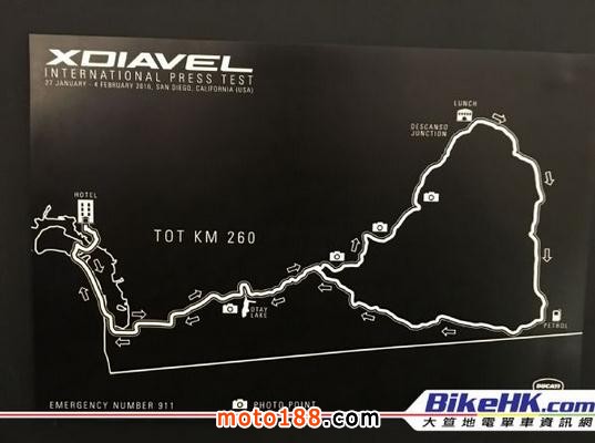今次大會安排到美國圣地牙哥做XDiavel路測,我覺得廠方選擇地點確實有點用意的,要知道巡航車的發(fā)源地是美國,而這國家也正是龐大的巡航車市場,所以,能在這里安排大型傳媒活動會有更高的成效和說服力。