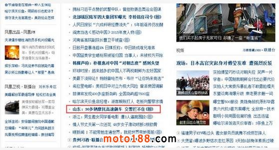 春節(jié)上班首日,摩托高速飆車又上新聞。鳳凰網(wǎng)今日在首頁(yè)就重點(diǎn)推送了一篇《山東:30多輛摩托高速飆車 交警攔不住》的新聞。以下是全文: