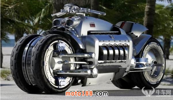 美國(guó)本土肌肉車品牌道奇旗下的摩托車——道奇戰(zhàn)斧,也是個(gè)稱王稱霸的角色。這款車的獨(dú)特之處在于它像汽車一樣,配備了4個(gè)輪子,但前后車輪都是成對(duì)的靠在一起,所以從側(cè)面來(lái)看,還是傳統(tǒng)摩托車的樣式,這四輪提供了極強(qiáng)的穩(wěn)定性,配合著10缸的發(fā)動(dòng)機(jī),最高速度約可達(dá)640公里/小時(shí)。當(dāng)然,如此彪悍的車子,價(jià)格也相當(dāng)不菲,約為人民幣350萬(wàn)左右,令人咋舌??!