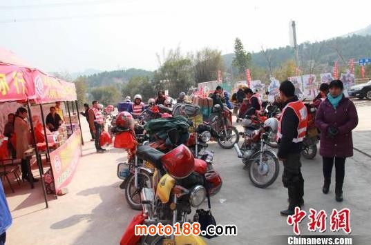 大批返城摩托車進(jìn)入服務(wù)站休息。 陳展存 攝