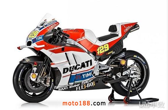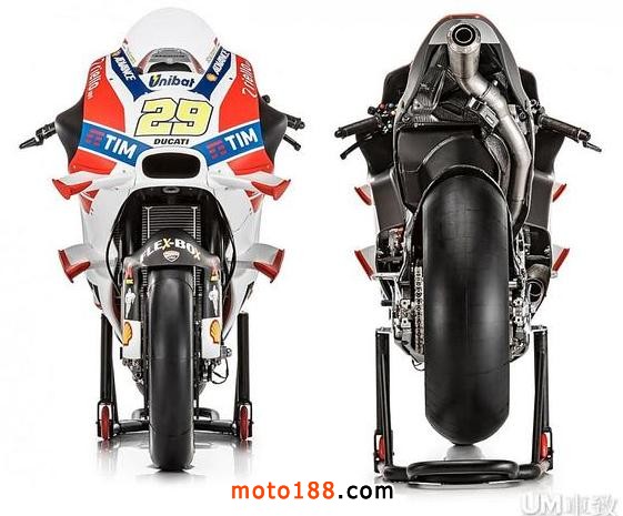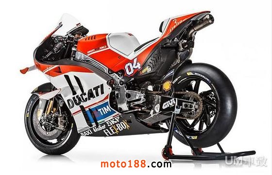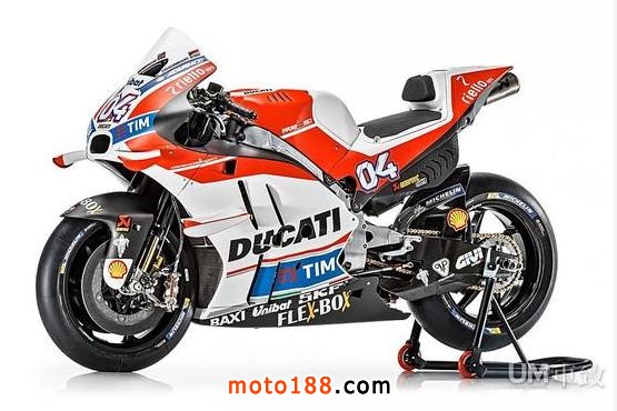 當(dāng)?shù)貢r間2月23日,MotoGP杜卡迪車隊發(fā)布了2016賽季全新戰(zhàn)車Desmo16 GP 。新車依然采用了紅、白、黑的顏色涂裝,而設(shè)計上最大的亮點(diǎn)在于車頭位置加裝了類似F1賽車上的擾流翼片,該翼片可以提供更強(qiáng)的下壓力,從而起到提升車速的目的,而這一點(diǎn)已經(jīng)在2015賽季得到印證。2016賽季揭幕戰(zhàn)將于3月20日在卡塔爾的羅塞爾賽道打響,感興趣的車迷不要錯過喲。