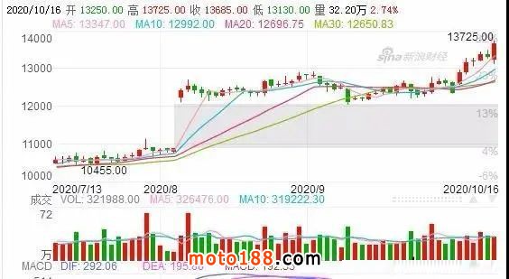 天然橡膠價格從4月的9564元/噸漲到10月的13298元/噸,漲幅高達3734元/噸,漲幅已經(jīng)超過28%。10月16日開盤價13250元/噸,收盤價13685元/噸,天然橡膠價格持續(xù)走高。