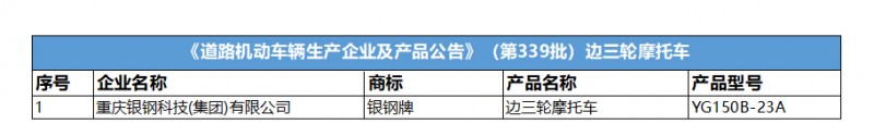 第339批公示的邊三輪摩托車品牌包括:銀鋼牌,能上牌的1款產(chǎn)品型號見圖4。