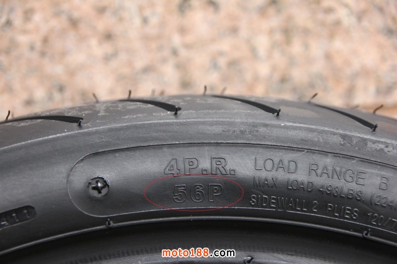 旁邊的一些參數(shù)也一起講一下,4P.R.表示輪胎體采用4層結(jié)構(gòu),層數(shù)越多、載重能力越強。MAX.LOAD 493LBS.224kg)表示最大負(fù)載為224kg、 也可以理解為、承載重量為224kg。LOAD RANGE B,負(fù)荷等級為B級(和4P.R,4層結(jié)構(gòu)是一個意思)