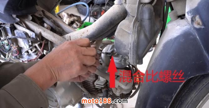 啟動開后如果摩托車怠速不穩(wěn),這樣我們就需要調(diào)整混合比。調(diào)整混合比之前首先把怠速調(diào)高一點,啟動開后等摩托車發(fā)動機完全熱后再調(diào)整。然后找到化油器上的混合比螺絲,不管是順時針還是逆時針,調(diào)到摩托車發(fā)動機轉(zhuǎn)速最高停下來,這樣混合比狀態(tài)也是最好的,也是最省油燃燒也最充分,發(fā)動機動力當(dāng)然也是最佳狀態(tài)。