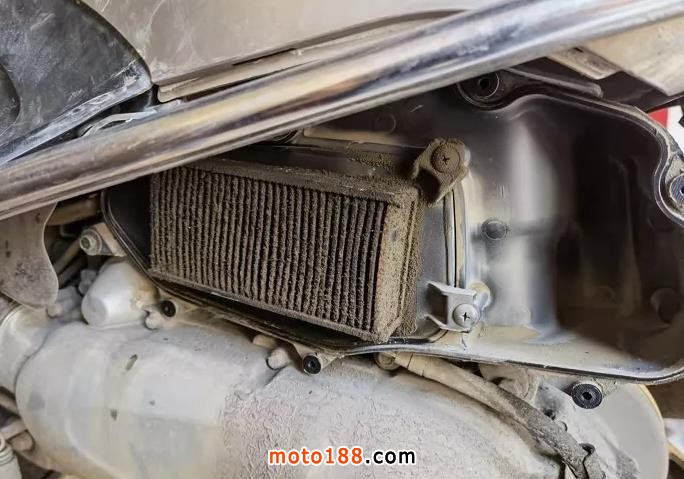 一位踏板車用戶就不知什么時候?qū)⑴盼劭兹纬?,而且此用戶對于摩托車保養(yǎng)非常不嚴謹,我們來看空氣濾清器內(nèi)部: