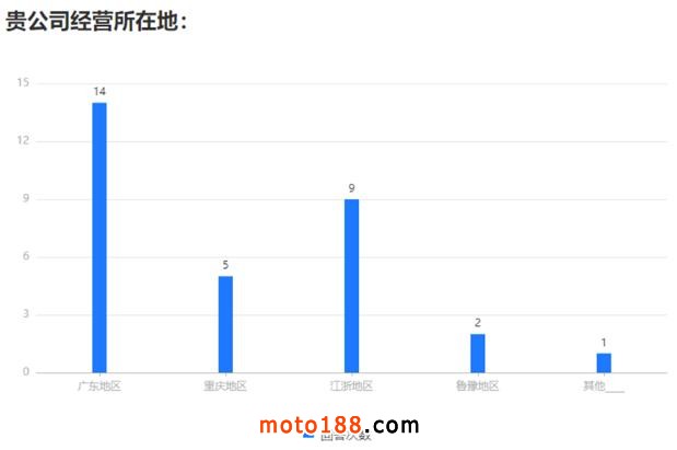 參與此次調(diào)查的摩托車企業(yè)主要集中在廣東地區(qū),占比 45.2% ,其次為江浙地區(qū)( 29% )和重慶地區(qū)( 16.1% ),與目前摩托車產(chǎn)業(yè)集中度基本相符。