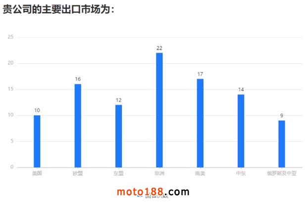 非洲、南美和歐盟成為企業(yè)主要出口市場(占比分別為:22%、17%、16%)。
