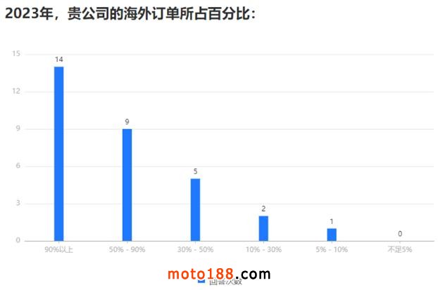 企業(yè)的海外訂單占比普遍較高,部分企業(yè)( 45.2% )海外訂單占比超過九成。